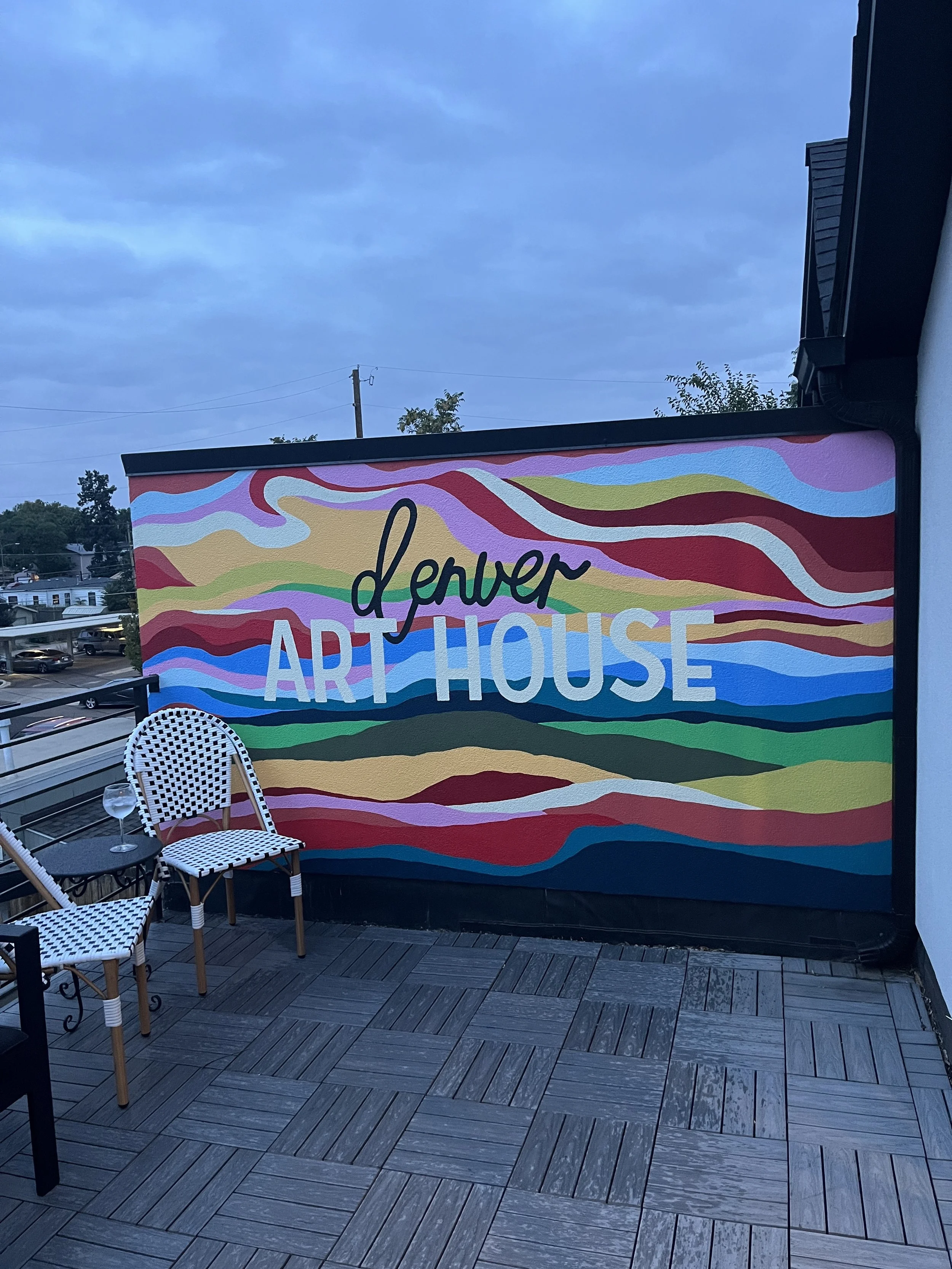This mural is a vibrant, abstract reflection of Colorado’s mountains and the rich colors found in its landscapes. Flowing shapes and bold hues bring energy and warmth to Denver Art House, creating a space that feels both grounded in nature and full of creative possibility.